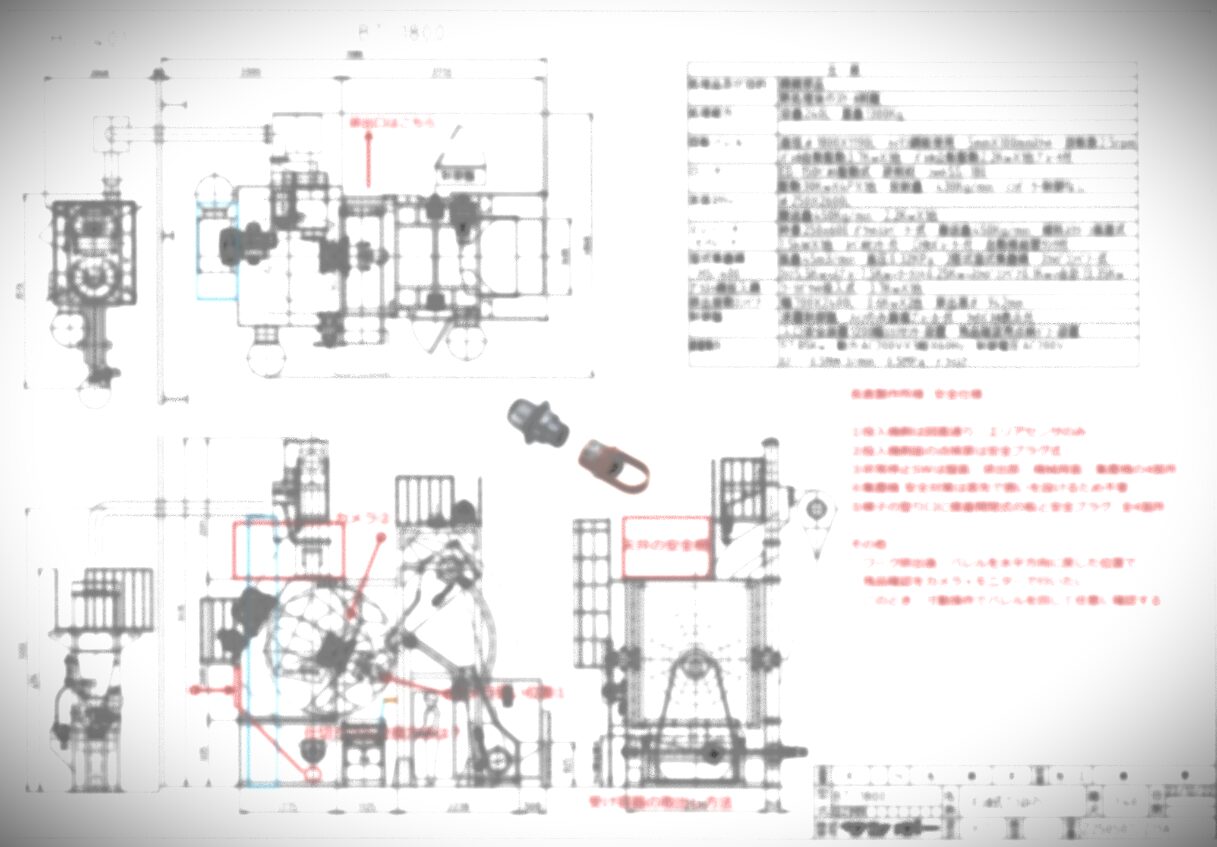 図面に基づき、ブラストマシンの部品組立・配線・据付作業を行っていただきます。
